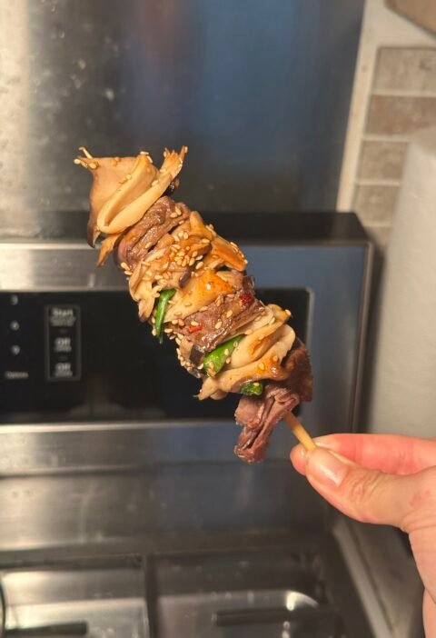 Easy King Oyster Mushroom Beef Skewers