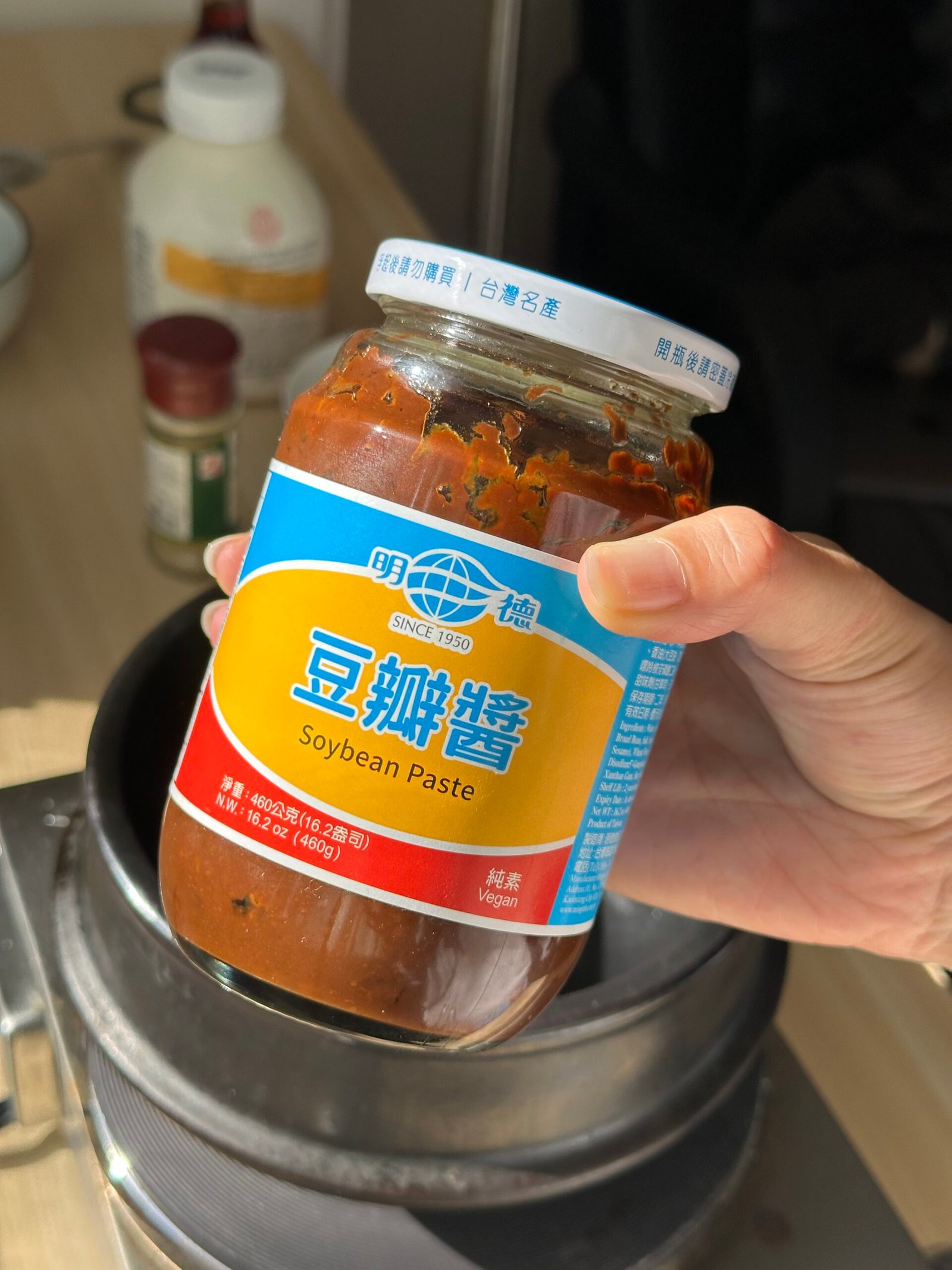 - Doubanjiang: The heart of any mapo tofu — a fermented chili bean paste that gives deep umami and spice. My favorite brand I grew up eating in my household is made in Taiwan from “Ming Teh”.