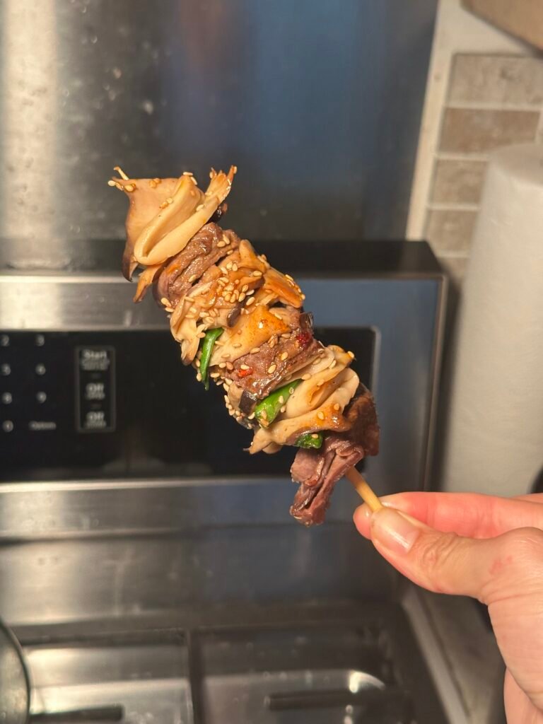 King oyster mushroom beef skewers are simple, savory, and incredibly satisfying. They combine tender beef, juicy mushrooms, and fresh green onions into one easy, flavorful bite. Best of all, they come together quickly with minimal ingredients.