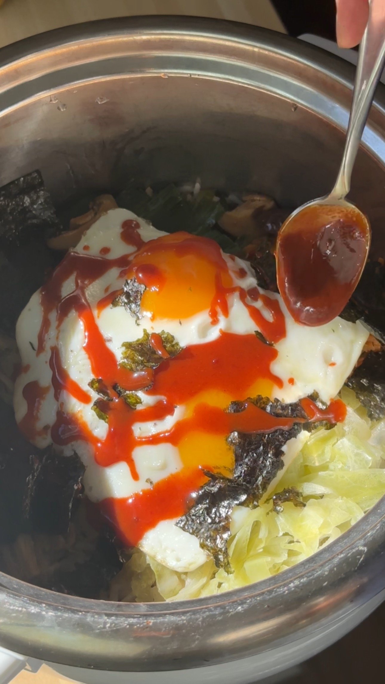 • Fried eggs: Rich in protein and healthy fats, finishing the bowl perfectly.